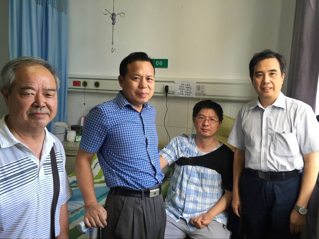 在中南医院,看望了生病住院的李益健同志和张维昊教授。李益健,退休党员,85岁高龄,因脊柱错位做了手术,术后需要卧床3-6个月等待康复。看到他时,他躺在病床上已十多天还不能翻身。张维昊教授因脑部出血生病住院,在医院做康复治疗。见到杜院长,张老师还在牵挂“神农架科考队”,他说“神农架科考队”是我校大学生社会实践的一个品牌,我院要培养选拔那些业务素质好,甘于奉献的老师做指导老师,继续做好这个品牌。杜院长转达了学校和学院党委的关心,嘱咐他们保重身体,以乐观的态度面对困难,祝愿他们幸福健康地生活。